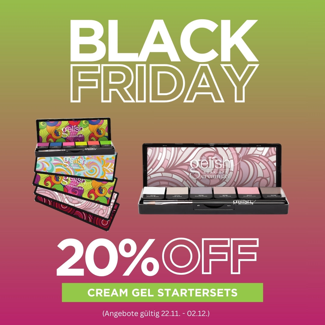 Revolutionäre Gellack-Technologie: unsere Cream Gels bekommst du im Black Friday nur jetzt 20 % reduziert.